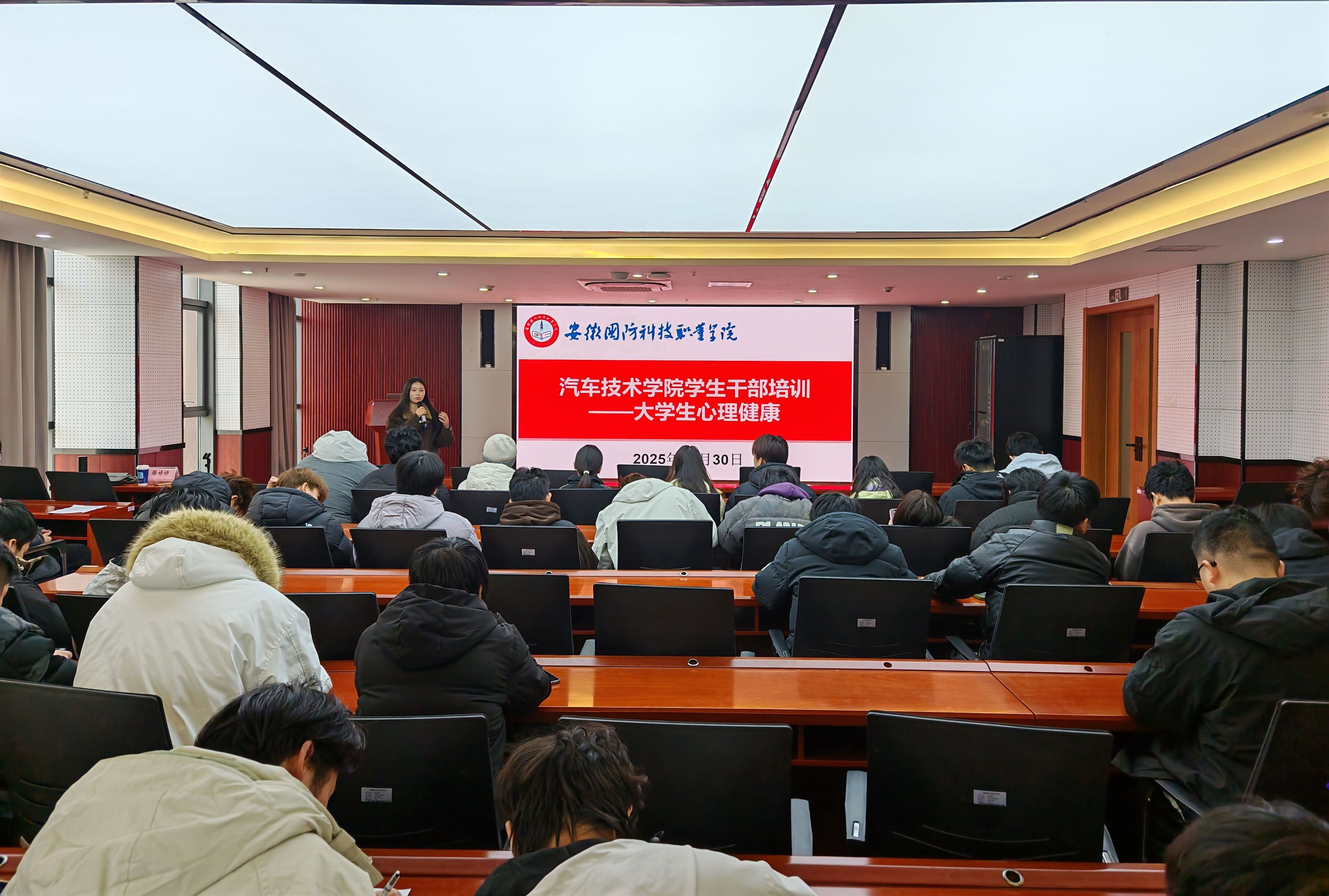 本网讯 为提升学生干部心理素质与自我关怀能力,促进其更好地服务同学、健康成长,12月30日下午,汽车技术学院面向学生干部开展了一场主题为“心理调适与自我关怀”的专题培训,由学院团总支书记徐婷婷担任主讲。
