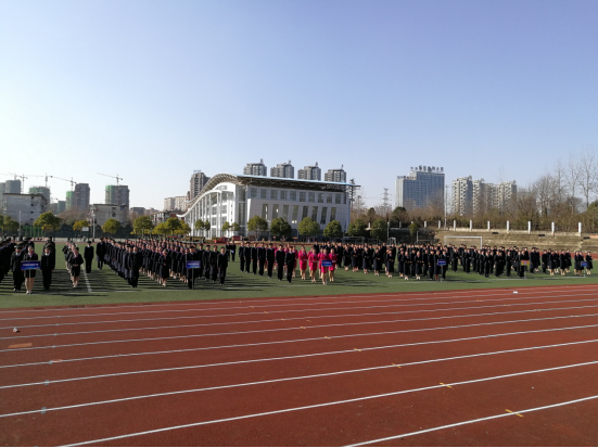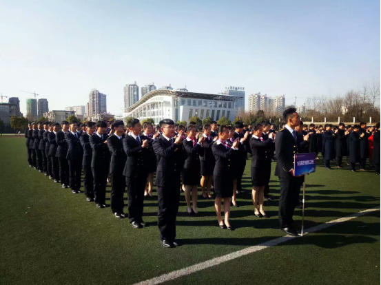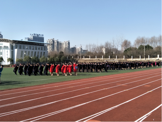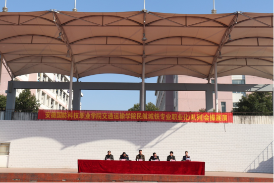 本网讯(经贸管理学院 吴平)2017年12月20日中午,交通运输学院在校塑胶操场隆重举行民航城铁专业职业化(列队)会操展演,出席本次活动的有中航国铁章道林主任、中航国铁吴文斌主任、交通运输学院教学部李建新主任、交通运输学院院长助理江红流主任、交通运输学院学工部胡晏平主任、职业化课程指导阮露老师、职业化助教周文慧老师、各班级班主任以及参加会操展演的2016级全体学生,2017级新生在体育看台观摩,近900人参加本次活动。