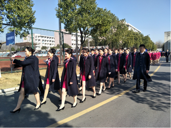 伴随着职业化课程指导阮露老师的口令,11个班级近600名学生一起做礼仪指引手势,整齐一致的动作,充分展示出学生们的训练成果,也以此向检阅的领导们证实自己的力量:我们是最棒的!