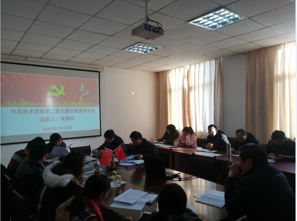 本网讯(汽车技术学院 杨志清)为切实加强基层党建工作,明确落实支部书记抓党建第一责任人责任,根据学校《关于做好2017年度基层党建述职评议考核工作的通知》(校党〔2018〕1号)的要求,汽车技术学院于2018年1月10日下午在学院会议室分支部开展党支部书记述职测评工作。