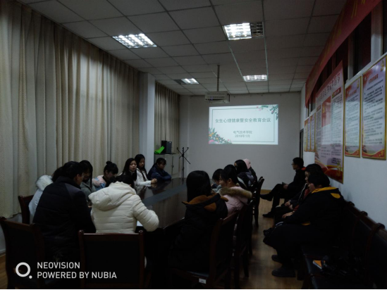 本网讯(电气技术学院 汤晓莉)为加强女大学生的心理健康和个人安全的教育工作,促进女大学生健康成长,电气技术学院党总支于2018年1月16日组织召开了全院女生专题会议,会议由党总支副书记罗威主持,由学院心理健康工作辅导员汤晓莉主讲。