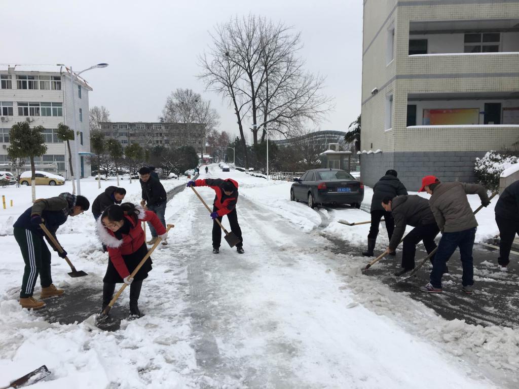 本网讯(城市建设学院 张凤)1月28日下午两点,根据中共六安市直工委《关于迅速组织清扫办公区域等处积雪的紧急通知》和校党委的号召下,城市建设学院党总支、直属六支部、直属九支部在校党委副书记、纪委书记朱德明的带领下开展了铲雪活动。