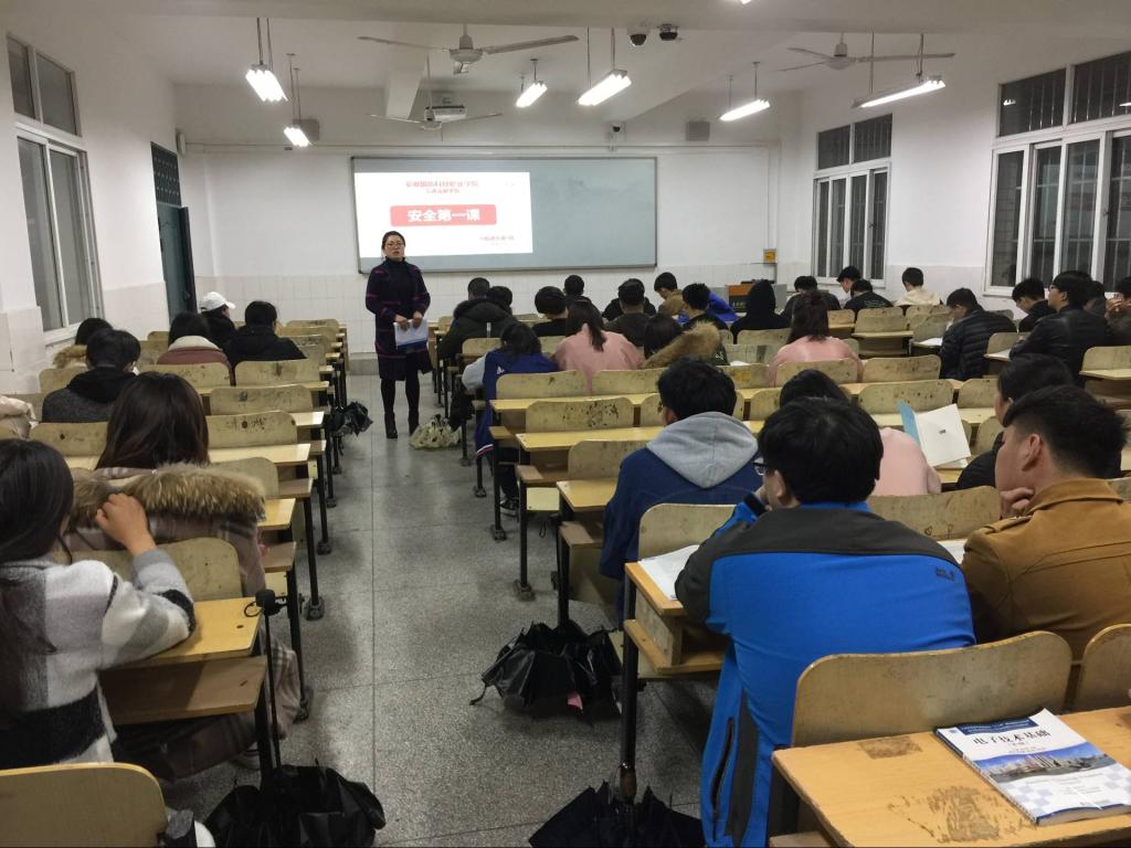 本网讯(经贸管理学院 占润润)学期伊始,为提高广大学生的安全意识和自我保护能力,提高安全防范和自我警觉性,根据学校要求和院班主任会议布置,经贸管理学院16、17级班主任在各班级开展了新学期安全教育第一课。
