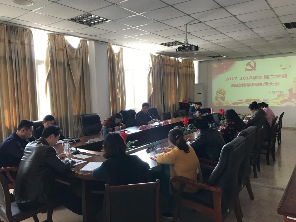 本网讯 3月23日下午,思政部在行政楼403会议室召开了全体教师大会。校党委委员、宣传部长、思政部主任袁旗出席会议,思政部全体专兼职教师参加了会议,会议由思政部副主任李倩主持。