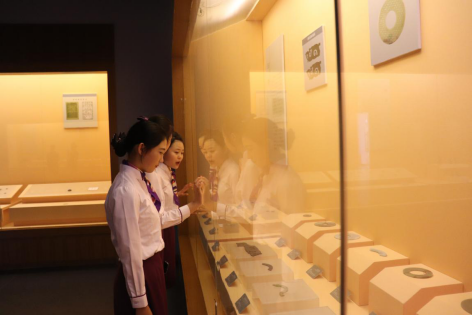 下午2:30分,同学们迎着艳丽的阳光,迈着整齐的步伐,前往皖西博物馆。馆内一幅幅图片映入同学们的眼帘,分别展示着皖西地区历史悠久的青铜文化、陶瓷文化、葬制文化、红色文化以及民俗艺术文化。馆内陈列着的历史文物和史料文献更是深深地吸引着学生们。