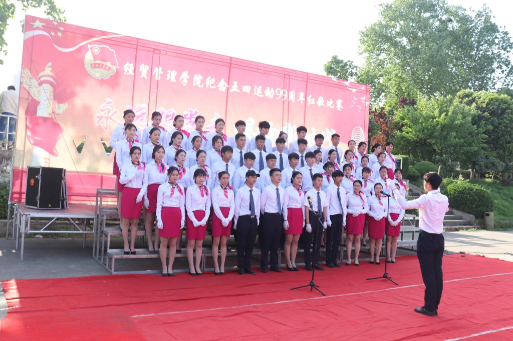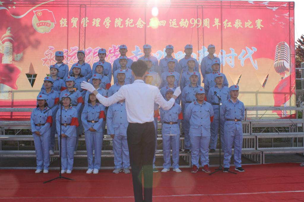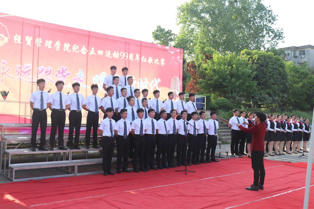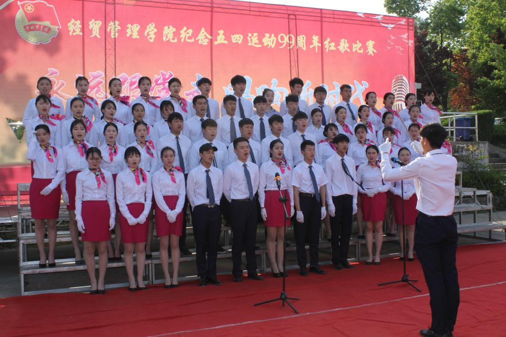本网讯(经贸管理学院 付玉梅)为纪念五四爱国运动99周年,加强广大师生思想道德建设,弘扬中华民族优秀传统文化,充分发挥校园文化的思想熏陶功能,经贸管理学院于2018年4月18日下午在校风雨操场举办“永远跟党走 唱响新时代”五四红歌会。院党总支书记杜先扬、副书记刘峰、副院长杨学分,团总支书记付玉梅、交通运输学院招生就业办主任江洪流,交通运输学院学工部吴文斌出席此次活动,各位辅导员、班主任应邀观赛。