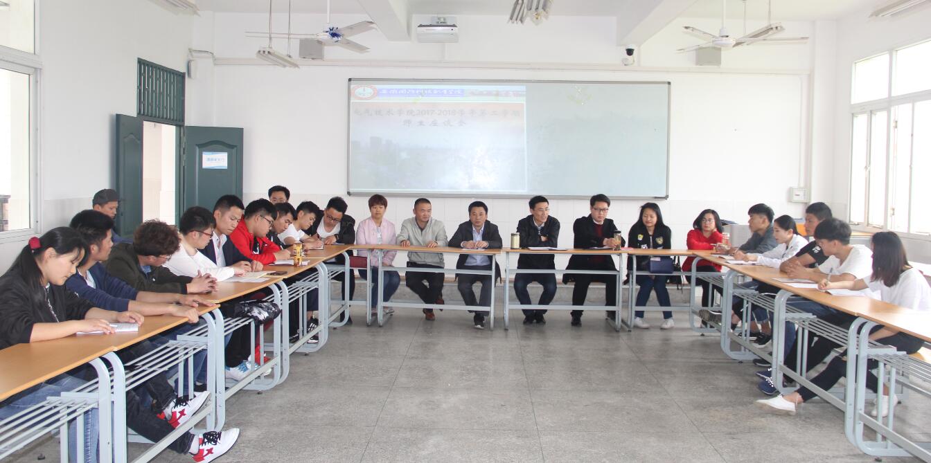 本网讯(电气技术学院 史媛芳)为提高教学管理服务水平和教学质量,更好地加强学生与教师之间的交流和沟通,进一步密切师生情感,根据电气技术学院教学督导组的学期工作安排,学院于4月25日下午组织召开了2017-2018学年第二学期师生座谈会。座谈会按年级分成两个组,分别在2教307、308教室同时进行,由电气学院副院长侯国栋、党总支副书记罗威分别主持,所有专业课授课老师及各专业班级的学生代表参加了会议。