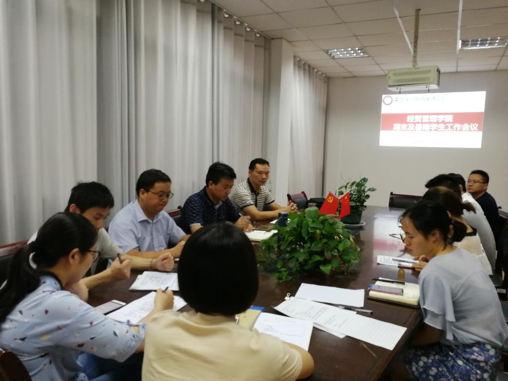 本网讯(经贸管理学院 许凤麟)为进一步贯彻落实7月5日学校学生工作专题会精神,6日下午,经贸管理学院召开学生工作专题会议,安排部署期末学生重点工作,党总支书记杜先扬、副书记刘峰、副院长杨学分出席会议,16、17级全体班主任参会,会议由刘峰主持。