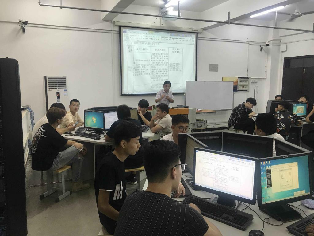 会后,为便于同学们对相关专业有更深入地了解,晚上七点四十,学院安排了各专业带头人和骨干教师分专业在实训室和同学们见面,在参观实训室的同时,又为同学们做详实的专业介绍,并详细解答同学们的疑问。