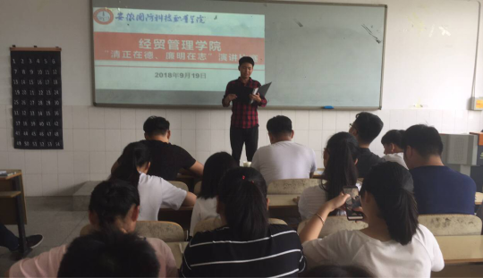 本网讯 为深入推动校园廉洁文化活动,加强大学生廉洁教育,9月19日中午,经贸管理学院在2教208教室开展“清正在德,廉明在志”主题演讲比赛。经贸管理学院团委书记付玉梅及院主要学生干部担任本次比赛评委。