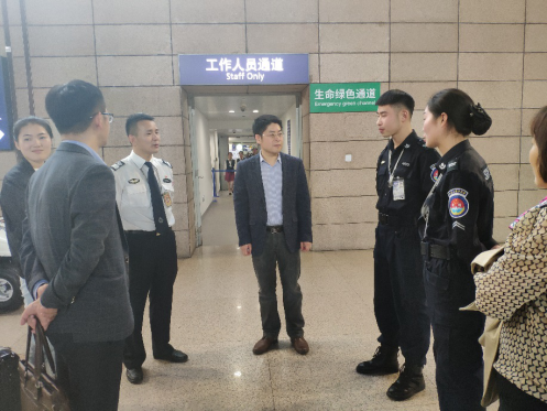 最后,杨力一行又前往实习基地上海浦东机场2号航站楼,看望正在安检岗位工作的学生。各位老师耐心询问学生的工作与生活情况,鼓励学生认真准备五级安检证的考核。上海浦东国际机场安检岗位领导对万象城官网顶岗实习学生的工作态度、专业技能和综合素质给予高度评价,称其在岗位上吃苦耐劳,积极参加企业各项活动,表现突出。