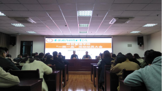 为了积极推进学院“一院一品”活动有序开展,11月7日,经贸管理学院在综合楼12楼会议室召开了“一院一品”动员大会,学院及交通运输学院主要学生工作人员、学院各班学生代表参会。