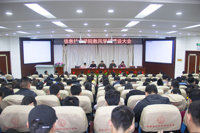 随后,院长黄存东作重要讲话。他指出,教风学风建设的关键是要培育创建优良教风,通过教风引导学风,通过学风促进教风。并提出十项具体要求:一要强化教师责任意识,严抓课堂纪律;二要开好主题班会,推动课堂学习“六不准”;三要强化辅导员班主任课堂管理职责;四要加强课堂考勤督查力度;五要开展学风建设先进班级创建活动;六要坚守学风建设“底线”;七要开展文明宿舍创建活动;八要依托科技文化节、职业技能竞赛等开展学风建设系列活动;九要严肃考风考纪,加强学生诚信教育;十要加强班级干部队伍建设,发挥学生干部模范带头作用。