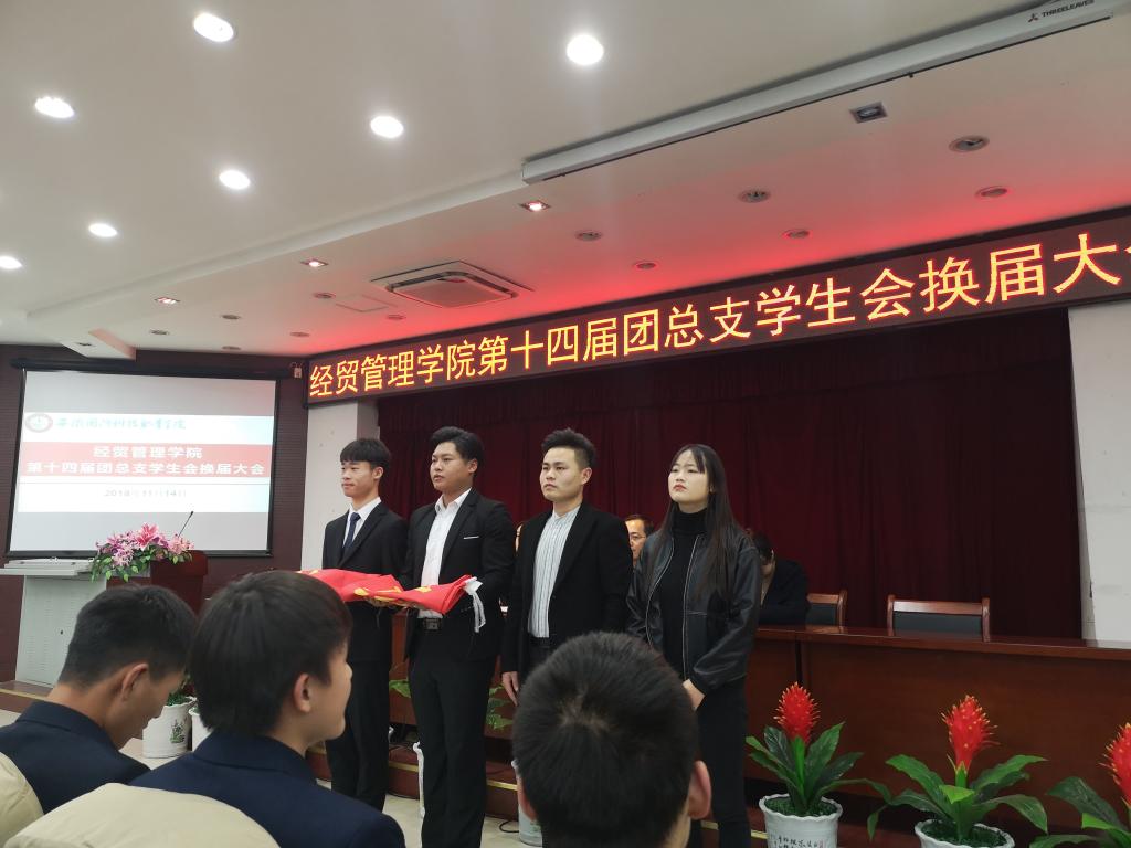 会上,上届学生干部代表高鹏程,周金亮发言。本届学生干部代表李奥,代久凯分别做述职发言,随后还举行了团总支、学生会旗帜交接仪式、合影活动。