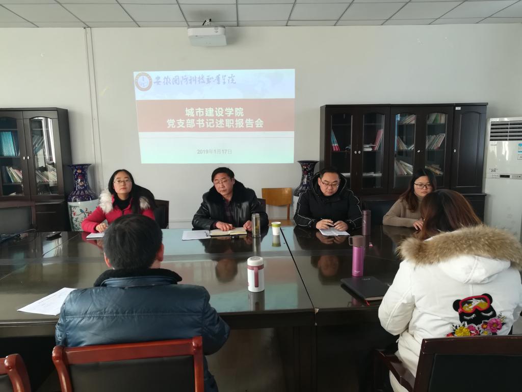 本网讯 岁末年关,一年的时间匆匆而过,为了对学院两个党支部所做的成绩进行评议,城市建设学院于1月17日下午2点30召开党支部书记述职报告会。会议由党总支副书记叶启衡主持,纪检委员王红林、一支部书记黄波、二支部书记张凤、党员教师代表左飞、赵之元参与会议。