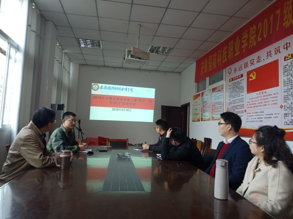 本网讯(电气技术学院 金玉好)为做好2019年省级职业技能大赛“机电一体化项目”赛项赛务组织工作,3月18日下午,电气技术学院召开了2019年安徽省职业技能大赛“机电一体化项目”赛项承办工作会议,会议由电气技术学院副院长侯国栋主持,院长李翔、赛项承办工作组成员参加了会议。