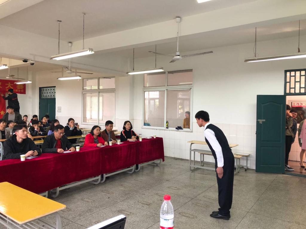 本次比赛划分为初赛、决赛两个环节。初赛于3月13号下午在2教105教室举行,共有56名同学参赛。初赛共分两个环节,第一环节现场答题,共有100道商务礼仪相关的题目,56名参赛选手进行手机答题。第二环节面试,参赛选手通过自我介绍和才艺表演,最终由主席团选取二个环节排名最高的十名选手进入决赛。