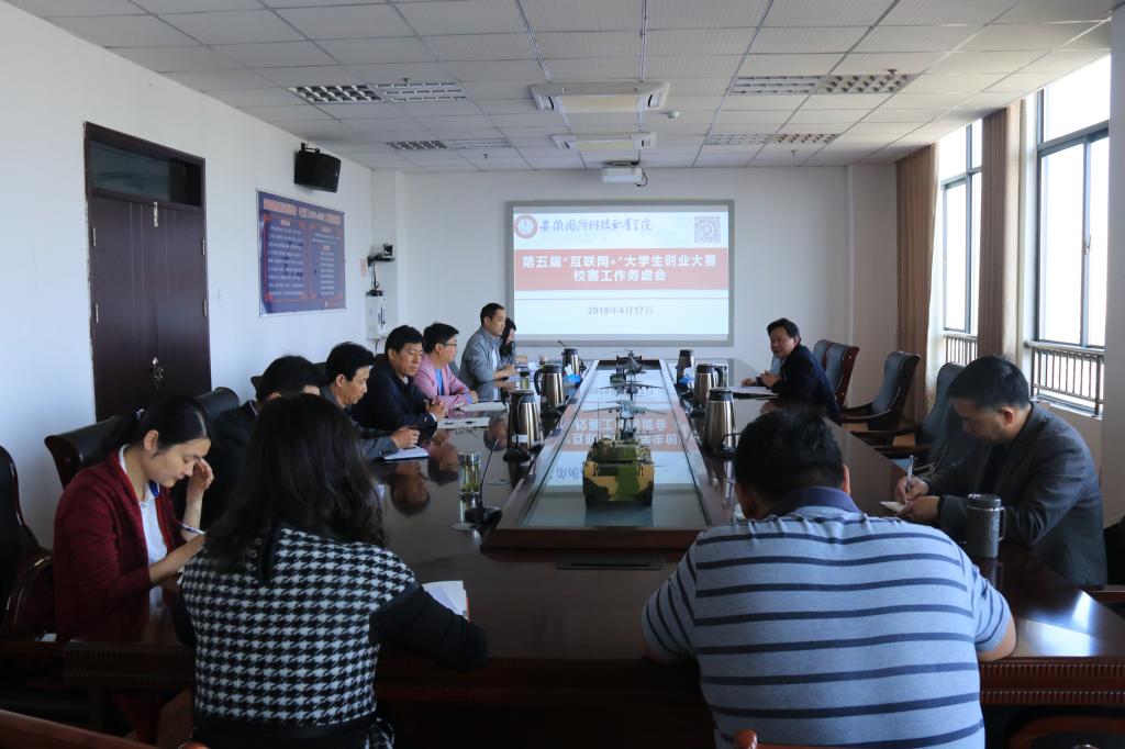 本网讯(团委 缪灵)4月17日上午,万象城官网在综合楼第一会议室组织召开安徽省第五届“互联网+”创新创业大赛校赛工作务虚会,校党委委员、副校长丁守宝,校党委委员、宣传部部长、思政部主任袁旗出席会议,教务处、招生就业办公室、实训中心、创新创业与就业指导教研室、团委等部门负责人,以及大赛优秀指导教师代表杨庆颖、陈晨参会。