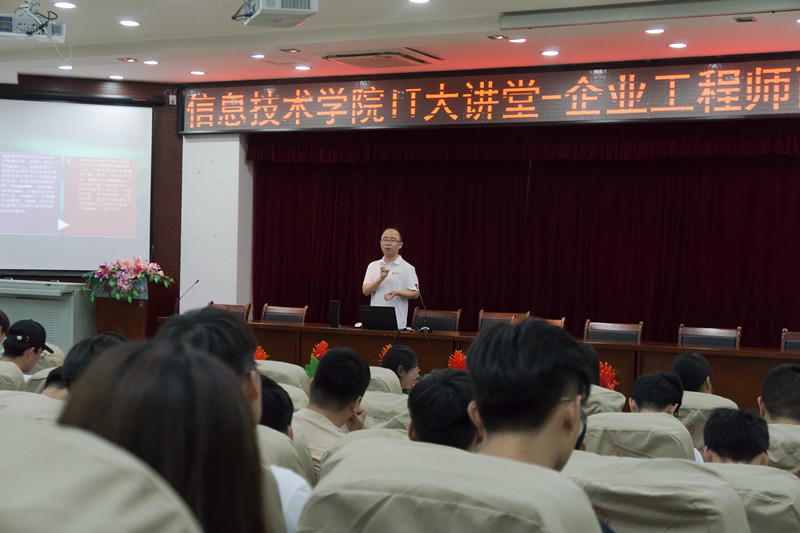 本网讯(信息技术学院 张春)5月23日晚,信息技术学院联合中兴教育共同举办了《5G现状及未来发展趋势》专题讲座。讲座邀请了南京顺盛通信科技有限公司安徽区域技术主管谢飞作专题报告,全院200余名师生代表参加了此次活动。活动由中兴智慧城市学院副院长王干主持。