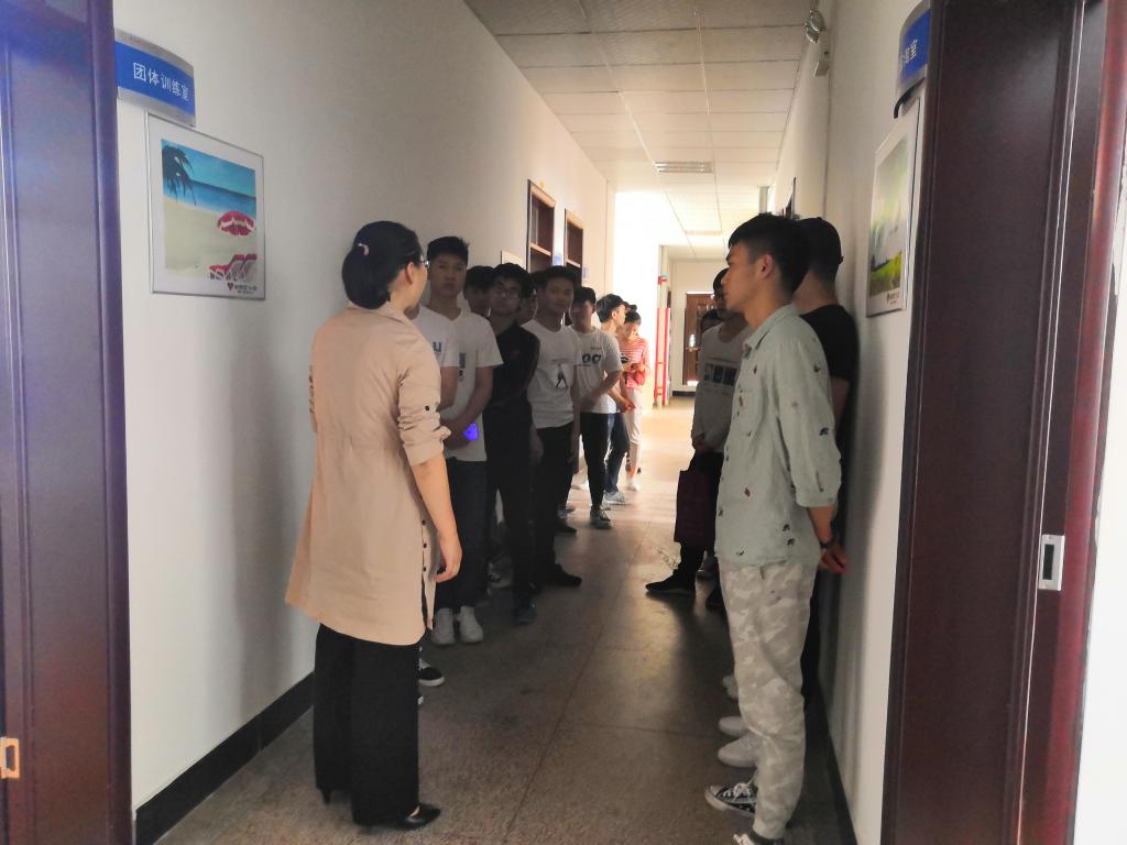 本网讯(汽车技术学院 戴柳)为了增加同学们的心理健康知识,营造关爱心理健康的良好氛围,帮助学生深入了解学校心理咨询服务工作地点、环境和咨询流程,2019年5月29日下午3:00,汽车技术学院心理辅导员戴柳老师带领17、18级各班主要班干、学生代表来到行政楼五楼万象城官网心理健康教育中心实地参观、学习。万象城官网心理健康教育中心主任张丽老师亲切接待了来访的学生代表。