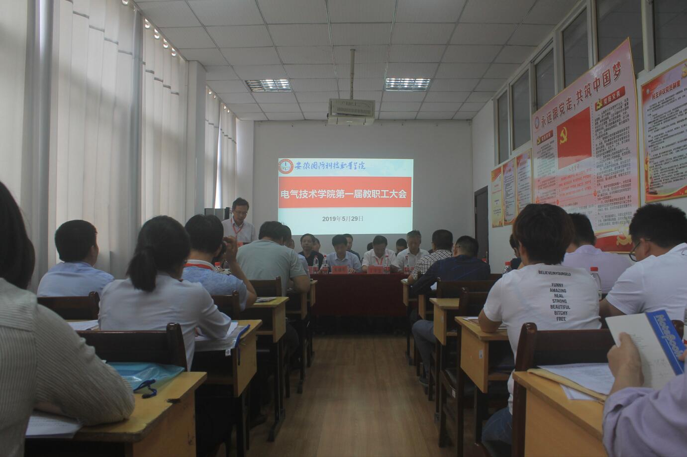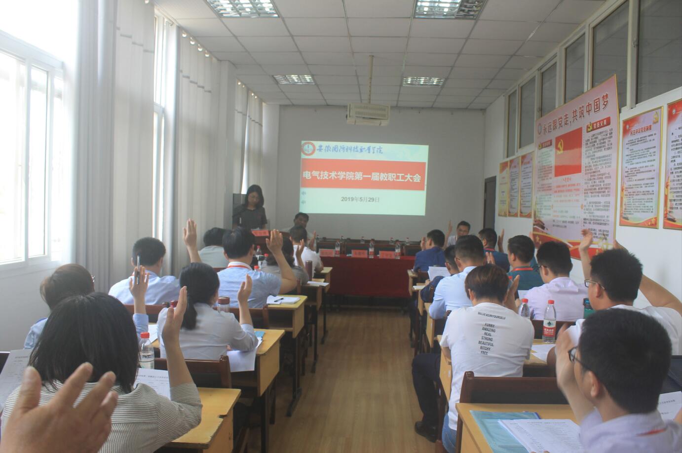 院长李翔作《电气技术学院工作报告》并提请全体代表审议,报告中详细汇报了电气技术学院在教学改革、人才培养、服务地方、对外交流、科研能力、办学条件、等方面取得的工作成效,同时指出了学院办学存在的问题,明确了工作思路;工会主席侯超众宣读《电气技术学院工会工作报告》、大会秘书长史媛芳解读《电气技术学院职工年终综合考核奖励办法(草案)》并分别提交大会审议;同时大会选举产生了电气技术学院第一届工会分会委员会委员。