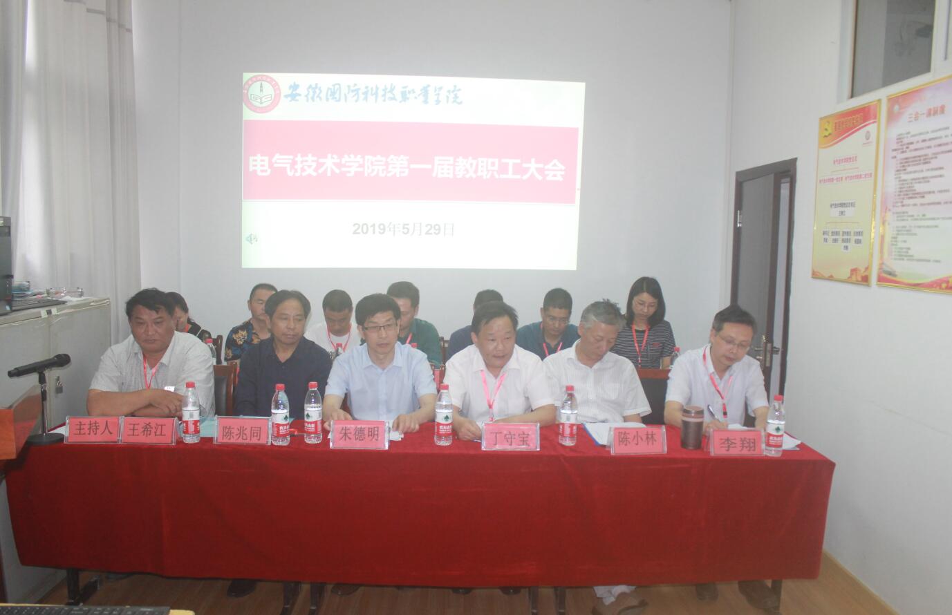 本网讯(电气技术学院 史媛芳)5月29日,电气技术学院第一届教职工大会在行政楼106会议室顺利举行。大会分预备会和正式会议两个阶段,由党总支书记王希江主持。校党委副书记、纪委书记、工会主席朱德明列席会议。校党委委员、副校长丁守宝,电气技术学院全体教职工代表参加大会。列席会议的还有高职研究所主任陈小林、校纪检监察室主任陈兆同等。