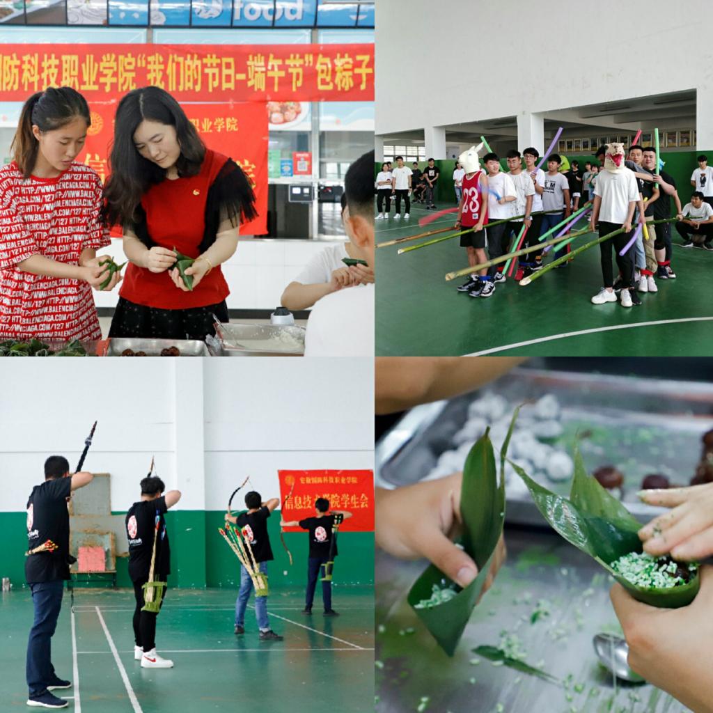 “我们的节日--端午节”系列活动。为深入学习贯彻党的十九大精神、积极培育和践行社会主义核心价值观、大力弘扬中华民族优秀传统文化、充分发挥民族传统节日思想熏陶和文化教育功能,由宣传部主办、学院团总支承办的“我们的节日——端午节”系列活动成功举办。旱地划龙舟、射五毒表演、师生包粽子比赛等精彩活动轮番上演,为大家带来传统节日的盛宴。