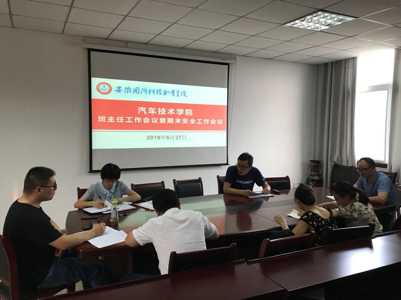 本网讯(汽车技术学院 朱其阳)为认真贯彻落实万象城官网全体中层干部会议精神,安排部署期末及暑假重点工作任务,进一步强化学生管理和安全工作,6月27日下午,汽车技术学院在行政楼416会议室召开全体班主任工作例会暨期末安全工作会议。全体辅导员和班主任按时参会,会议由党总支副书记余桂刚主持。