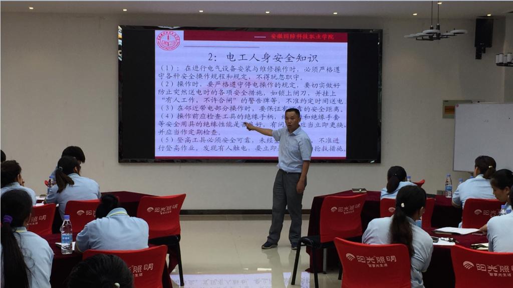 本网讯(电气技术学院 江治国)为进一步深化校企合作,积极推进电气技术学院社会服务能力建设,受安徽阳光照明电气有限公司邀请,学院选派任启宏、江治国两位教师深入企业,于7月10日至12日,为企业员工开展灯具安装专项能力培训与技术指导。培训内容主要围绕灯具灯具安装专项能力考核要求,采用理论与实践相结合的方式,达到预期培训效果,受到参训员工的一致好评。