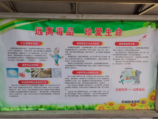 本网讯 为进一步加强学院学生对毒品危害的认识,增强自我保护意识,为在校学生营造良好的成长环境,普及毒品预防知识,近日,机械技术学院开展了以“不让毒品进校园”为主题的校园禁毒宣传教育系列活动。