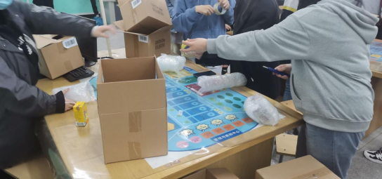 活动过程中,同学们互相交流,互相学习。在对物品进行打包后,再由每位学员对彼此的比赛成果进行评比、打分,指出不足之处并加以改进。测试成品的防震、防摔能力是否合格。