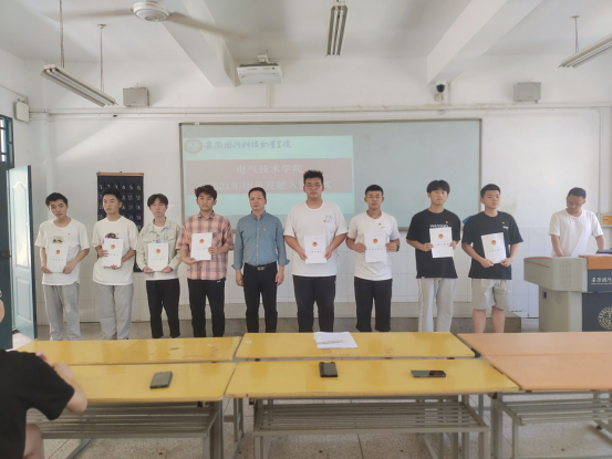 本网讯(电气技术学院 侯超众)为进一步加强共青团队伍建设,向团组织输入新鲜血液,在中国共产党建党100周年来临之际,2021年7月1日,电气技术学院团总支在二教107教室举行新团员入团宣誓仪式,仪式由电气技术学院王腾州老师主持,电气技术学院团总支书记侯超众、团总支学生会主要干部及八名新团员参加了本次入团宣誓仪式。