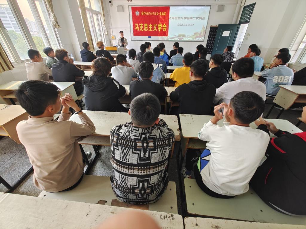 本网讯(思政部 戴柳)为了增进新会员对马克思主义学会的认识和了解,提高会员的马克思主义理论素养,加强学会的管理,2021年10月27日下午4:00,马克思主义学会在2教403召开第二次例会。例会由办公部部长杨胜波主持,学会指导老师戴柳、学会骨干成员、全体会员参加。