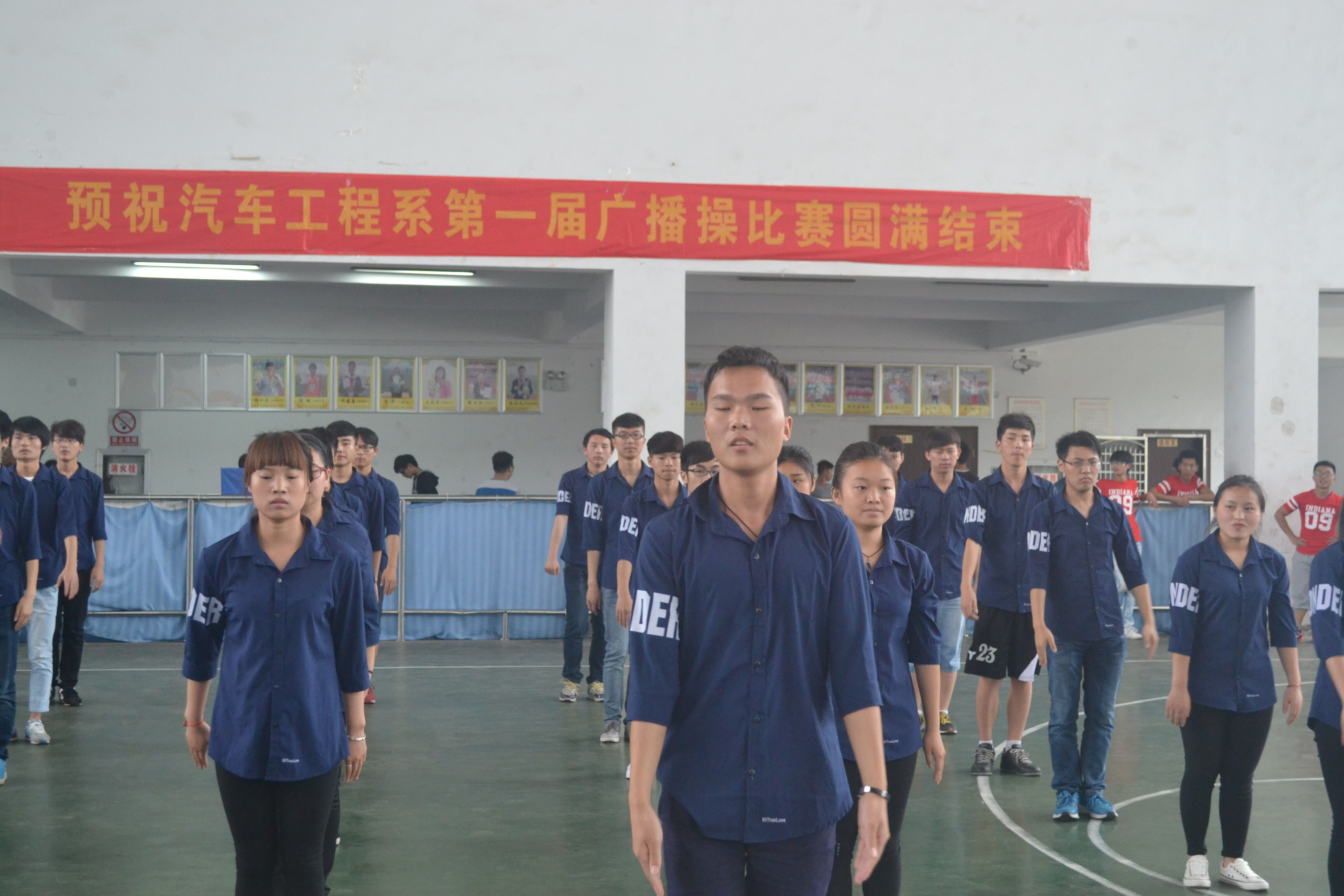 为了推进阳光体育运动的蓬勃发展,展示学生的风采风貌,让师生树立“健康第一”的观念,增强学生的健康意识和身心素质,汽车工程系在 2015年 5 月 15 日下午举行第八套广播操比赛。
