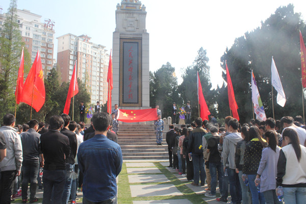 在庄严的革命英雄纪念碑前,学生们神情肃穆,齐唱国歌。学生代表向纪念碑敬献了花篮花圈,全体师生在庄严肃穆的烈士纪念碑前集体默哀,悼念革命英雄。活动结束后,学生们被先烈们的英雄事迹深深地震撼,纷纷表示要珍惜今天的幸福生活,牢记使命。(供稿:院团委大学生记者团)