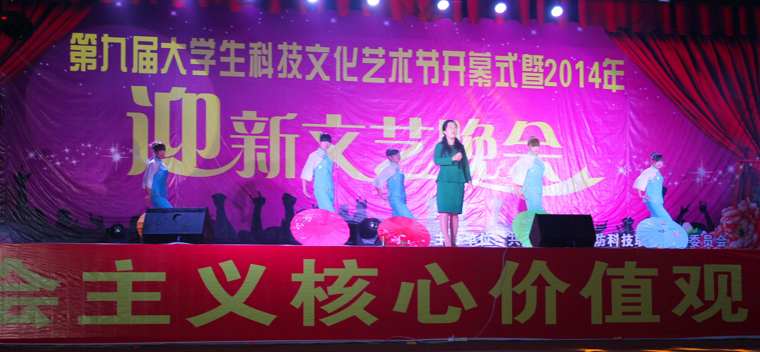 今晚的国防灯火璀璨,流光溢彩,这注定是一个激情荡漾之夜、注定是一个令人流连忘返之夜、注定是一个师生同乐的不凡之夜。2014年10月25日晚,由院团委主办、院学生会承办、安徽国防科技职业教育集团调演的“践行社会主义核心价值观,共筑伟大中国梦”迎新文艺晚会在我院田径运动场拉开帷幕。院各级领导与职教集团部分成员单位负责人应邀出席,并观看了表演。