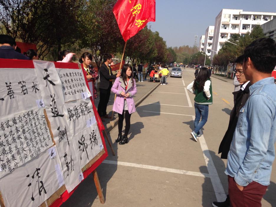 11月21日中午十一点三十,由管理工程系、建筑工程系、信息工程系联合举办的“三系联谊”书画大赛作品展活动在院食堂门口拉开帷幕。活动现场迎来了许多观众,纷纷为自己喜爱的作品投票。