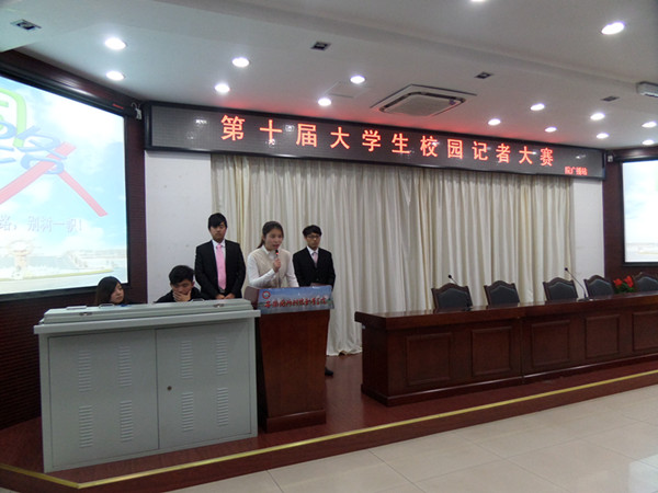 11月26日,由院团委主办的万象城体育awcsport第十届校园记者大赛在图书馆报告厅隆重举行。目的是为丰富我院校园文化生活,激发同学们对记者的兴趣爱好;锻炼同学们的应变能力、语言表达能力、分析问题能力、采访能力、和记者方面的专业素质水平。