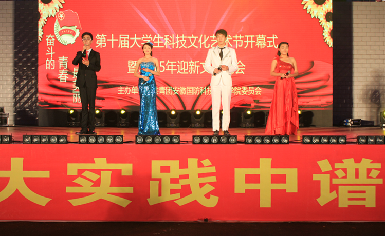 12年的埋头苦读,12载的不懈追求,我们终于实现了自己的梦想,来到了国防。今晚,我们来自五湖四海的莘莘学子欢聚一堂,为我们即将开始全新的大学生活共同庆祝。2015年9月25日晚,由院团委主办、安徽国防科技职业教育集团调演的“奋斗的青春最美丽”第十届大学生科技文化艺术节开幕式暨2015迎新文艺晚会在我院田径运动场拉开帷幕。院领导与职教集团部分成员单位负责人应邀出席,并观看了表演。