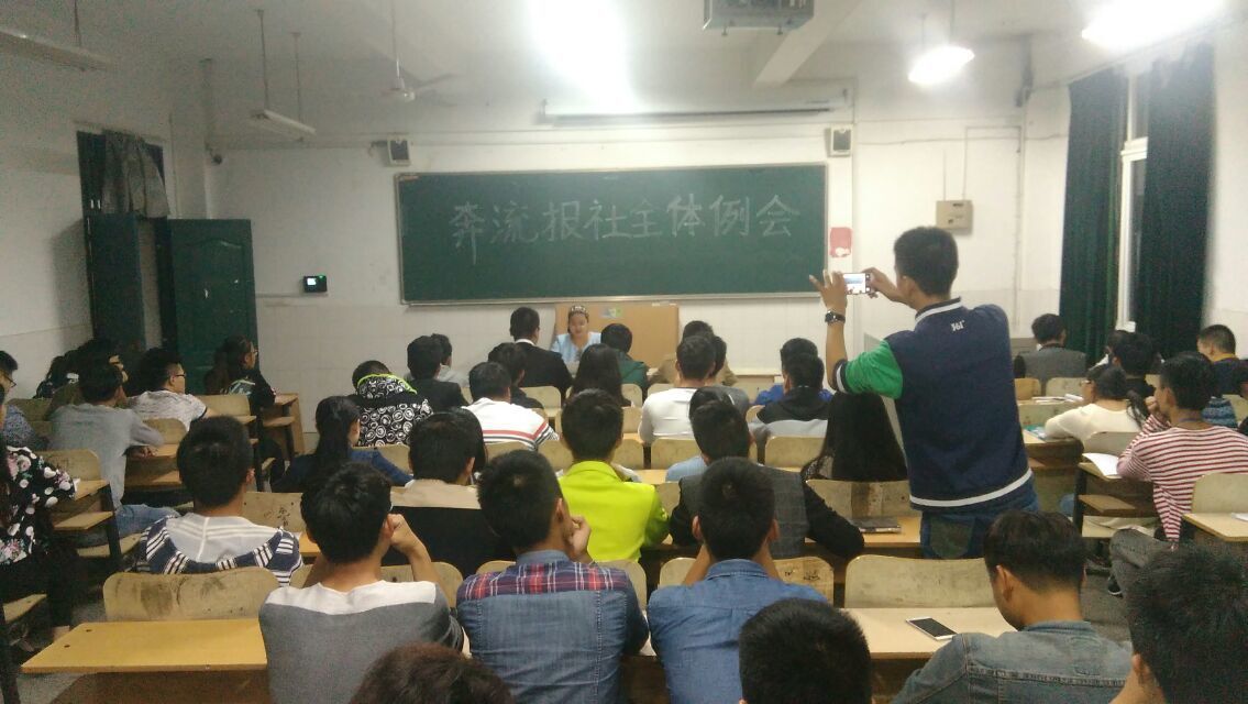 10月22日晚上9:30在2教107教室院奔流报社举行第一次全体例会。会议由社长王茂才同学主持主持,指导老师陈思出席会议并发表讲话。