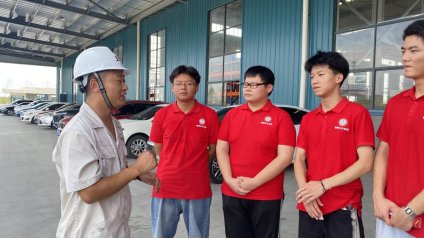 本网讯(汽车技术学院 陈梦雅)六安市深入实施绿色振兴赶超发展战略,在新能源汽车配套产业上持续发力,成效显著,近日,汽车技术学院组织暑期“三下乡”社会实践团队前往六安市经济开发区开展实践活动,感受新能源汽车配套产业的强大动能。实践团队分别走访了安徽明天氢能科技有限公司、安徽人和智能制造有限公司、安徽至信科技有限公司、安徽一本精工科技有限公司,通过实地的走访调查,了解企业的发展,体验制造业发展氛围、领略工业文化、感知工匠精神。