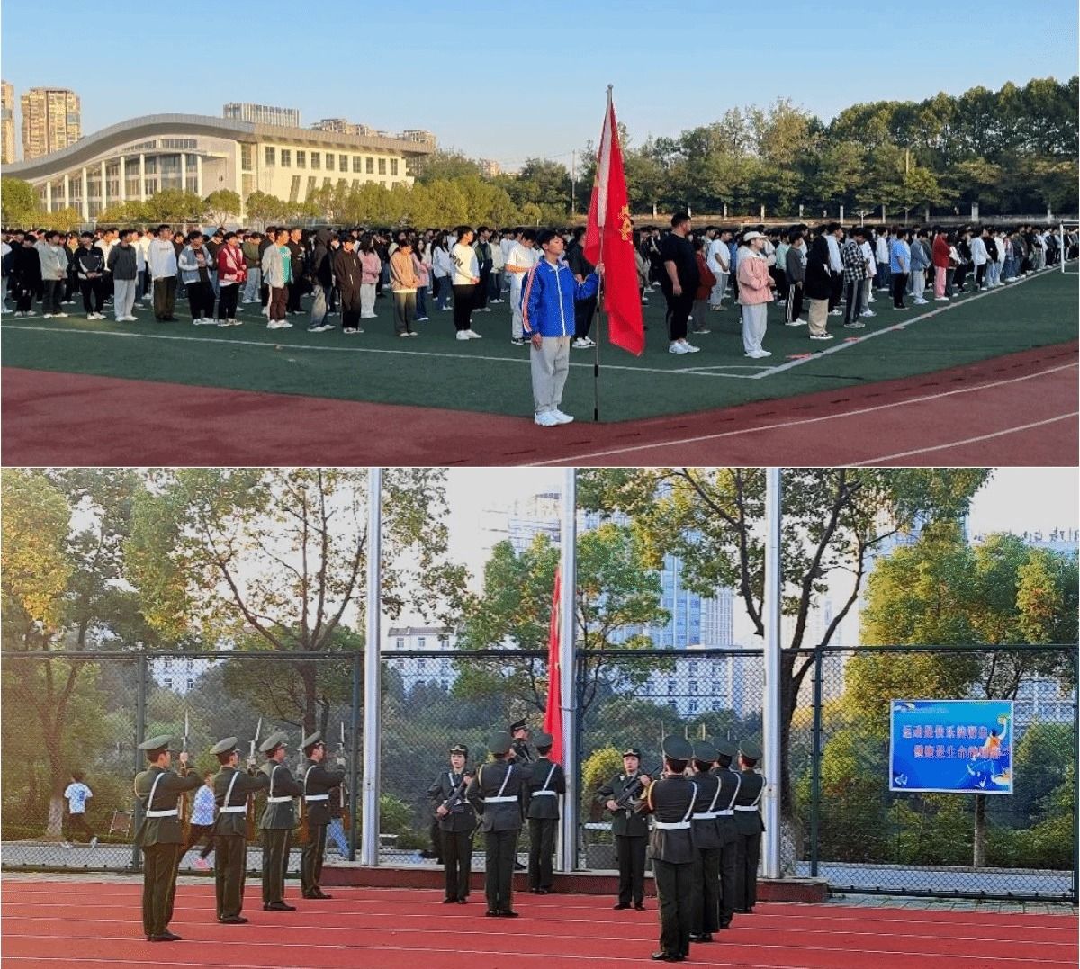 本网讯(学生通讯员:付冰心)为进一步加强学院爱国主义教育,激励全体师生以焕然一新的面貌、昂扬奋进的姿态蓄力新征程,信息技术学院于10月16日上午在校操场举行了升国旗仪式,学院党总支书记王胜、团总支书记孙颖凯,各班级辅导员及全体在校学生参加了本次升旗仪式。