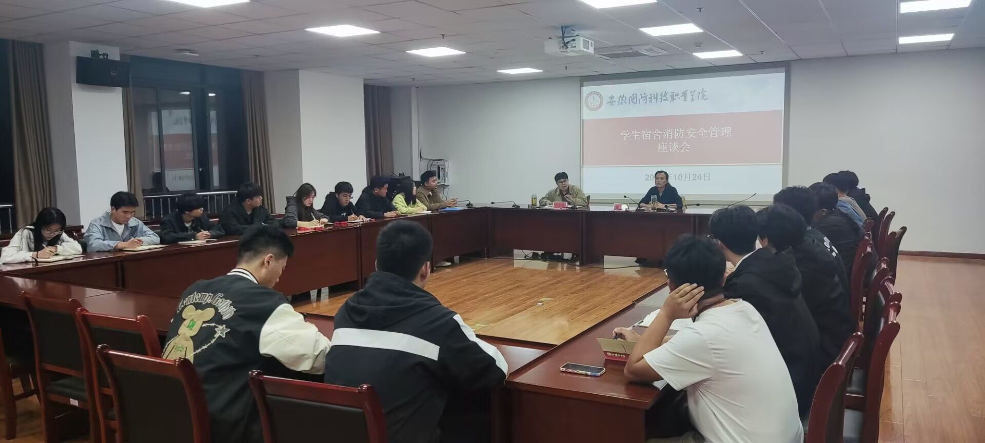 会上,学生代表纷纷踊跃发言,各抒己见,共同探讨学生宿舍的消防安全隐患以及解决办法。会上还对近期学生会工作进行了安排和讨论。