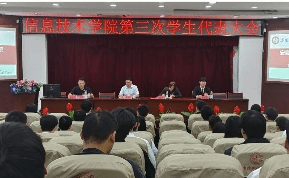本网讯 11月1日,信息技术学院在图书馆报告厅隆重召开第三次学生代表大会。信息技术学院党总支书记王胜、校团委副书记张凤出席本次会议,大会由院团总支书记孙颖凯主持,第二届学生会主席团成员陈仁君和91位学生代表参加了大会。