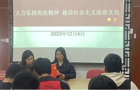 本网讯(学生通讯员 彭章雨)为深入学习宣传贯彻习近平法治思想和习近平总书记关于网络强国的重要思想,提升全民网络法治素养,机械技术学院团总支与小华山街道河滨社区,在12月4日联合开展“大力弘扬宪法精神 建设社会主义法治文化”为主题的宪法宣传志愿活动。小华山街道河滨社区党总支书记江丽丽出席此次活动。