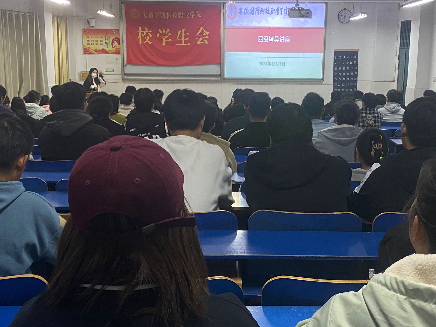 本网讯(学生通讯员 唐公雨)为强化同学们的英语四级学习意识,明确英语四级复习方法,让同学们更好地备战大学英语四级考试,12月7日下午,校学生会在2教205顺利举办“英语四级考试技巧与策略”讲座。