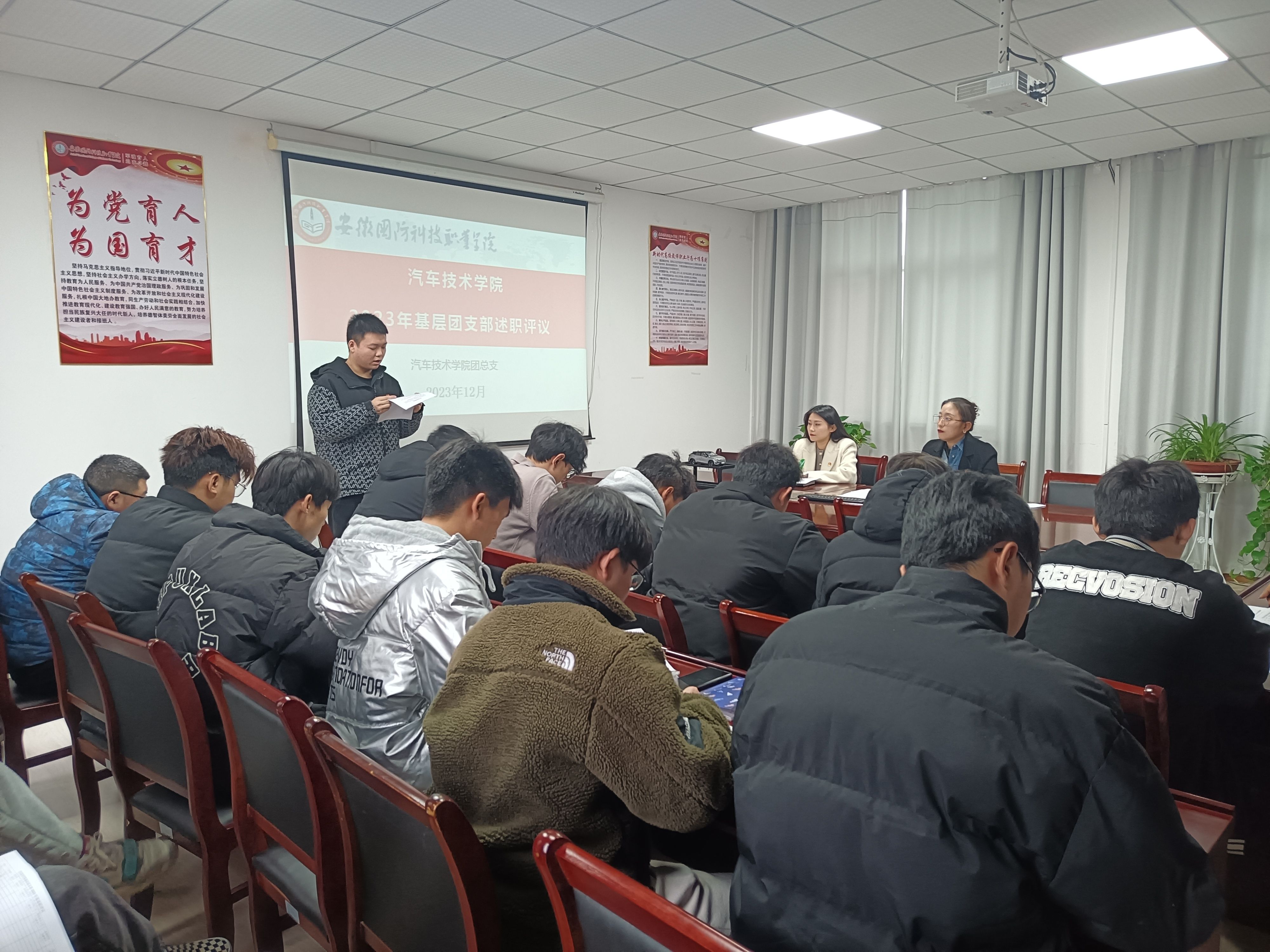 本网讯(学生通讯员 韩亚霖)为持续深化共青团基层组织改革试点工作,结合团中央《基层团组织书记述职评议考核暂行办法》文件要求,根据校团委工作安排,12月13日,汽车技术学院团总支在知行楼416会议室组织召开2023年度基层团组织书记述职评报告议会,学院团总支书记陈梦雅、教师兼职副书记徐婷婷与会听取汇报。