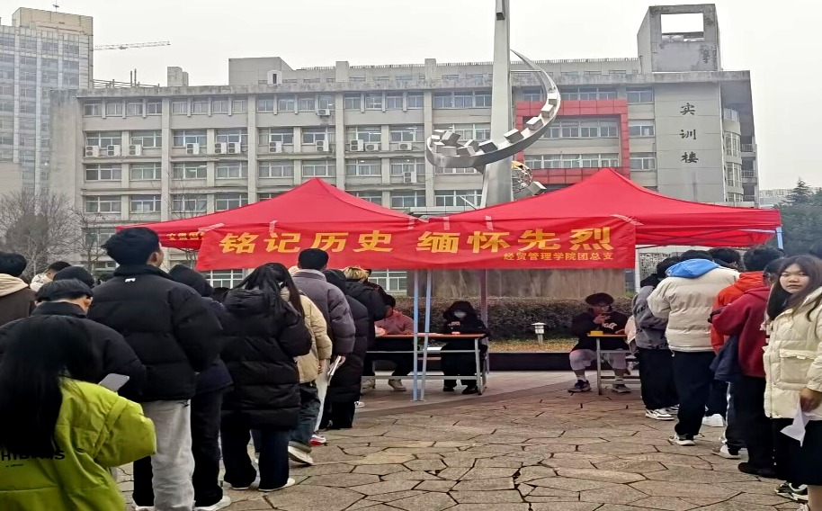 本网讯(学生通讯员 孙涵韬)为深切缅怀南京大屠杀无辜死难者,坚定青年学子铭记历史、不忘过去,珍爱和平、开创未来的庄严立场,12月13日,经贸管理学院团总支于校军工魂广场举办“前事不忘,后事之师”国家公祭日主题活动,全校同学积极响应参加了此次活动。