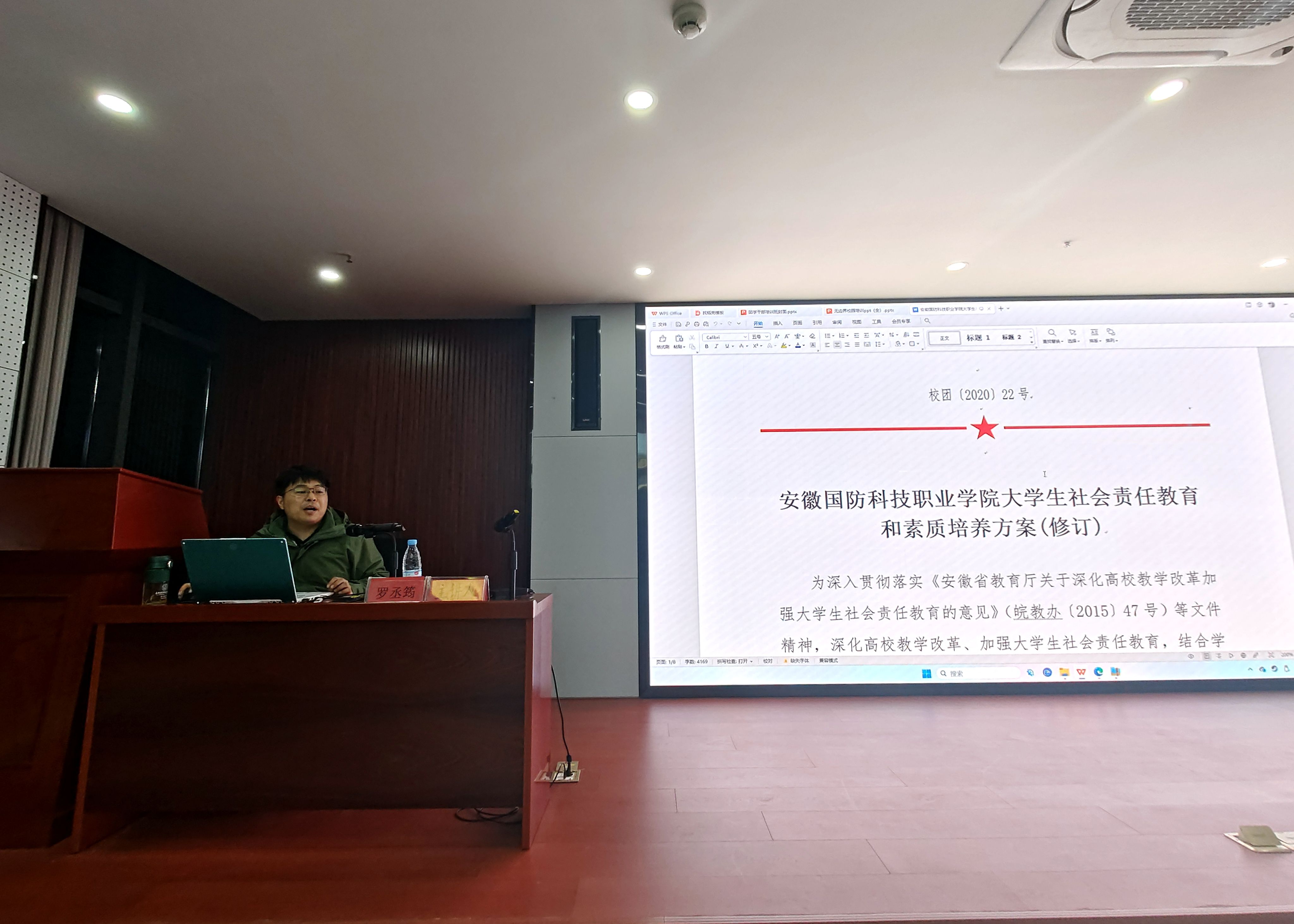 第四场培训由陈玮老师为学员带来《共筑学生宿舍安全防线》主题讲座。陈玮老师首先带领学员学习《万象城体育awcsport学生宿舍消防安全管理规定(试行)》文件通知,并传达通报了近期校院关于宿舍学生吸烟的有关情况。随后,陈玮老师通过分析历年来全国各地高校出现的火灾案例,列举了学生宿舍中常见的消防安全隐患,例如宿舍内吸烟、违规使用大功率电器、长时间充电等;他结合视频讲述了消防安全的重要性,就防火、灭火、逃生、自救四个方面进行了重点阐述,并介绍了火灾的形成过程、火场中易出现的延误逃生时机的误区、自救逃生的方法和扑救初期火灾的方法。