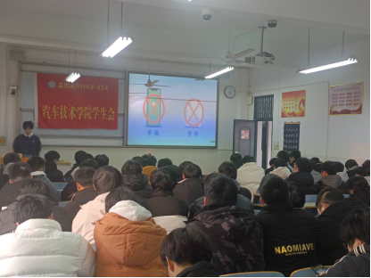 本网讯(学生通讯员 张良)为营造诚信、文明、有序的考试环境,展现汽车技术学院学子良好的精神风貌和专业的知识素养,12月27日下午汽车技术学院学生会开展了以“文明考风、诚信考试”为主题的诚信宣传教育活动,汽车技术学院各在校班级学生代表参加活动。